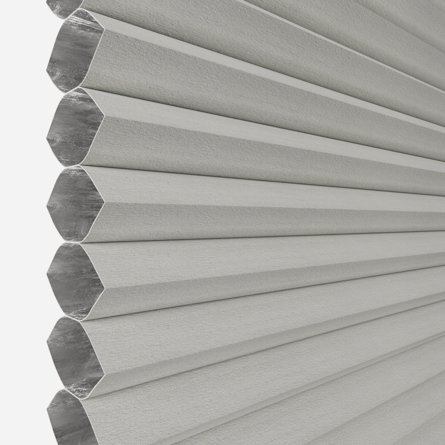 With its soft, muted grey-beige tone, this fabric offers a calm and versatile finish for Honeycomb Blinds. The smooth surface of the Valega range brings refined simplicity, while the blockout structure provides excellent privacy, glare reduction, and improved insulation.